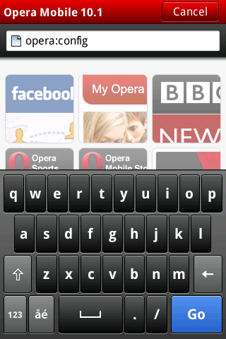 - Open Opera Mobile and type opera:config in the address bar and press go.